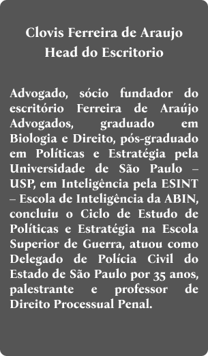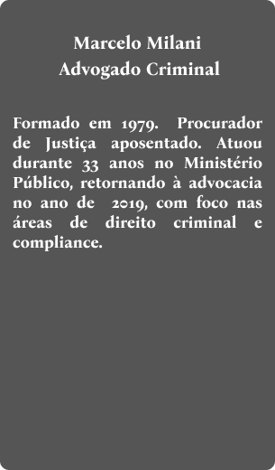 Formado em 1979. Procurador de Justiça aposentado. Atuou durante 33 anos no Ministério Público, retornando à advocacia no ano de 2019, com foco nas áreas de direito criminal e compliance.