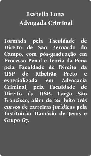 Formada pela Faculdade de Direito de São Bernardo do Campo, com pós-graduação em Processo Penal e Teoria da Pena pela Faculdade de Direito da USP de Ribeirão Preto e especializada em Advocacia Criminal, pela Faculdade de Direito da USP- Largo São Francisco, além de ter feito três cursos de carreiras jurídicas pela Instituição Damásio de Jesus e Grupo G7.